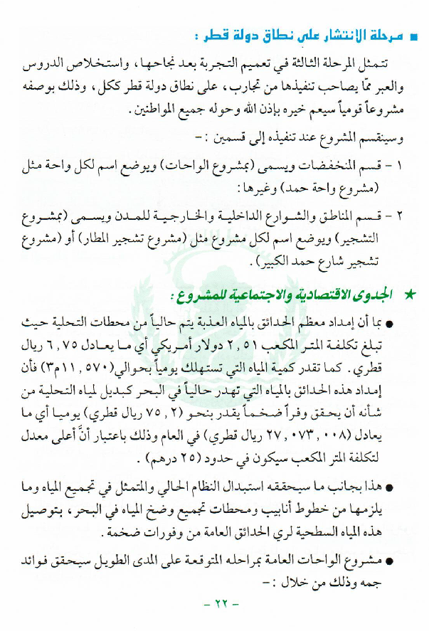 والبعيد ، وهى مشكلة المياه العذبه ومدى توفرها وترشيد استخدامها فى دولة قطر .
